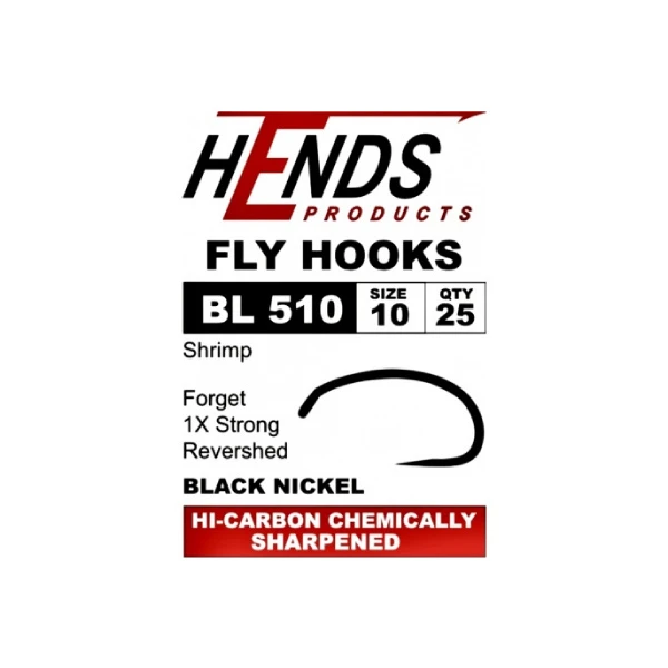 De Hends BL510 is een shrimp haak met een 1x sterke draad. Deze haak is zeer geschikt voor het maken van vlokreeften, pupa’s e.d. De Hends BL510 is een hi-carbon, chemisch geslepen haak in een black nickel finish.