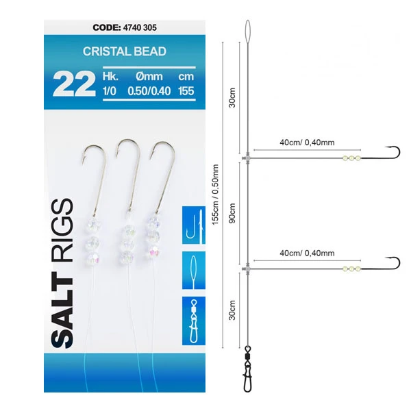 De Cristal Bead – Salt Rig 22 van Spro is een kant-en-klare onderlijn voor het zeevissen. Deze onderlijn is voorzien van sterke haken en attractieve kralen. De Cristal Bead – Salt Rig 22 is 155 cm lang en is uitgevoerd met twee haken.